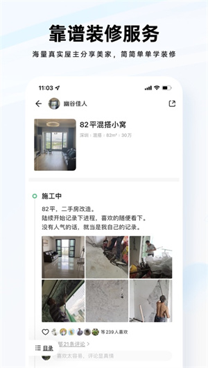 全面的裝修資源:App內擁有豐富的裝修資源,無論是裝修效果圖、實景圖,還是最新的裝修風格,用戶都可以在這里找到。