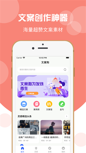文案狗App是一款集詩詞、句子、朋友圈火爆文案、網易云熱評、抖音火爆文案、名人名言、經典臺詞、座右銘、祝福語、優美摘抄于一體的句子文案作文素材APP。它為你提供豐富多樣的文案素材,滿足你在不同場合的文案需求。