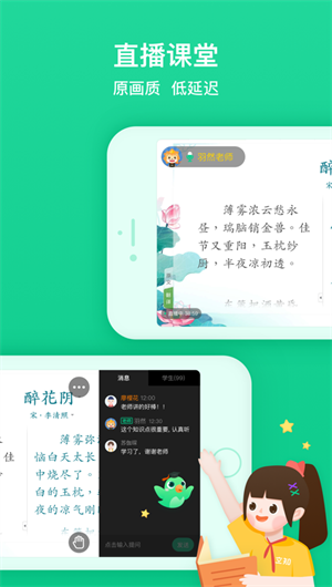 穩定高效:采用先進的技術保證課堂直播的穩定性,無論是音頻還是視頻都能達到清晰流暢。