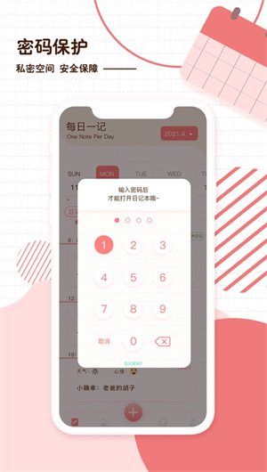 隱私保護:提供密碼保護功能,保護用戶日記的隱私安全。