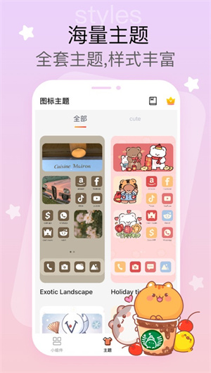 主題:提供各種精心設計的桌面主題,讓用戶的手機桌面更加獨特和個性化。