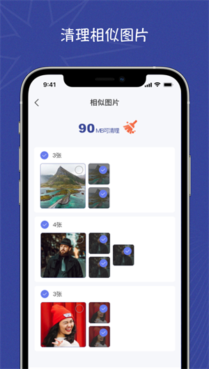相似照片識別:App具備高級的圖片比較算法,能夠找出手機中相似的照片和視頻,避免重復存儲。