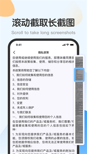 滾動截取:用戶可以滾動屏幕,App將自動截取屏幕內容。
