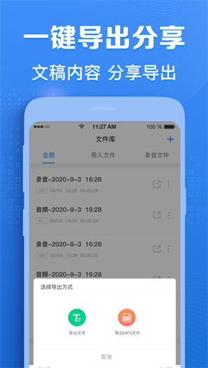 導(dǎo)出功能:轉(zhuǎn)換完的文字可以方便的導(dǎo)出,方便您的后續(xù)使用。