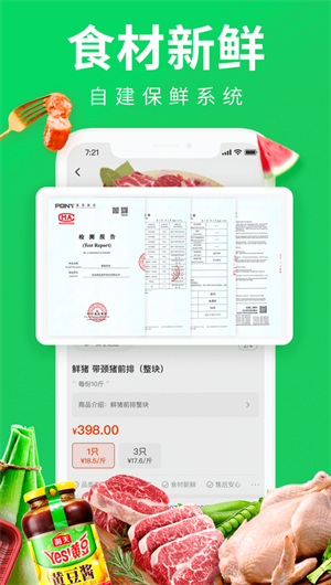 多品類產(chǎn)品:涵蓋蔬菜、水果、肉禽、水產(chǎn)品、米面和糧油等各類食品。
