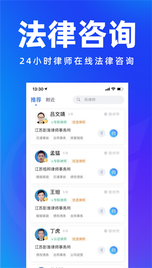 優質律師資源:擁有大量優秀的律師資源,為用戶提供專業的法律咨詢服務。