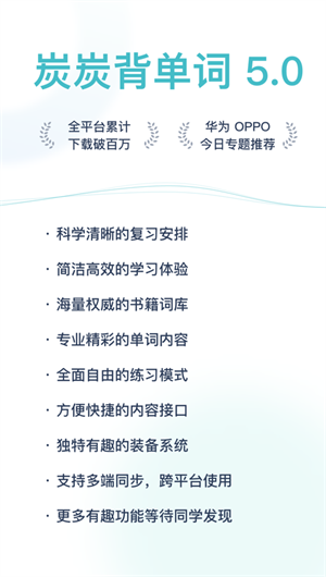 炭炭背單詞App是一款基于艾賓浩斯記憶曲線的單詞記憶應用。它極致簡潔,高效率的設計理念幫助用戶更有效地背記單詞,掌握更多的詞匯。