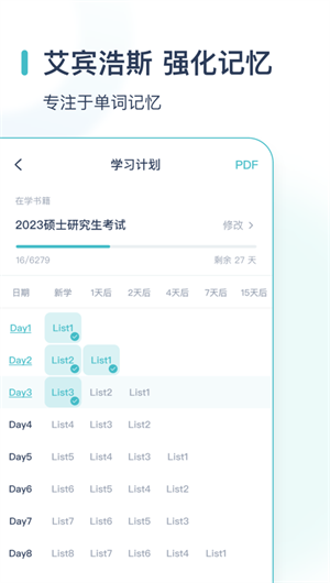 高效記憶:基于艾賓浩斯記憶曲線,使用戶在最短的時間內記憶更多單詞。
