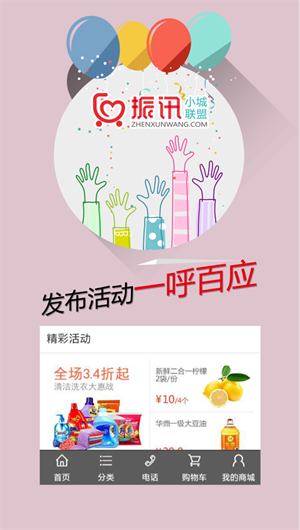 振訊小城聯(lián)盟App秉承“自由人的自由聯(lián)合”的使命,通過綜合線上線下的各行各業(yè),致力于縣域城市和農(nóng)副產(chǎn)品的推廣,促進(jìn)縣域城市地方經(jīng)濟(jì)的發(fā)展,為用戶提供集本地資訊,方便民眾生產(chǎn)生活,突顯不同縣域城市特色的互聯(lián)網(wǎng)商業(yè)生態(tài)圈。