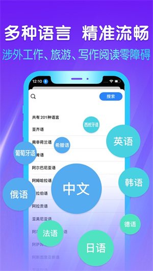 豐富的語種支持:支持多種語言翻譯,無論您去到哪個國家,都能輕松交流。