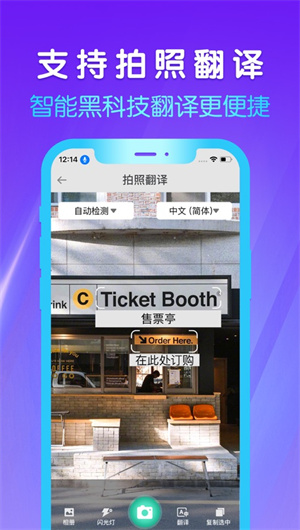 拍照翻譯:只需一拍,即可翻譯圖片中的文字。