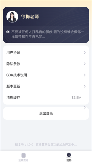 課程安排:能夠查看自己的近期課程安排,并及時(shí)接收課程開始的提醒。