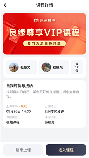 良緣尊享App是由我主良緣老師專為高端會(huì)員量身打造的一款服務(wù)平臺(tái)。通過該平臺(tái),老師可以查看自己的近期工作安排,啟動(dòng)線上課程等,幫助他們更高效地進(jìn)行教學(xué)工作和會(huì)員管理。