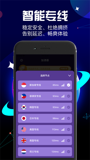 全方位加速:對游戲、視頻、網頁,音樂等內容進行全方位的加速。