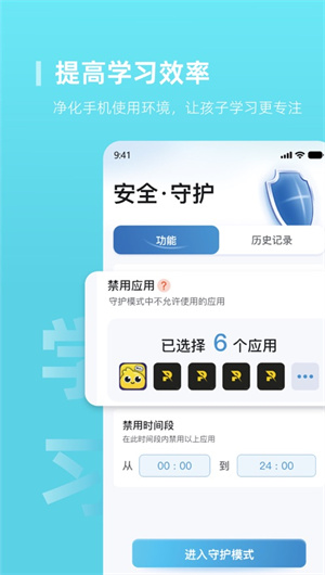 全面管理:不僅可以控制孩子的整體使用時(shí)間,還可以限制特定應(yīng)用的使用,實(shí)現(xiàn)全面管理。