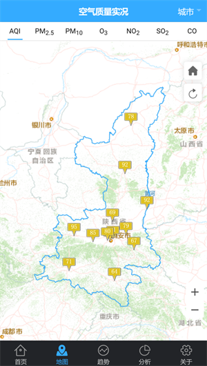 城市間比較:支持陜西省內不同城市的空氣質量對比,幫您了解全省的空氣質量狀況。