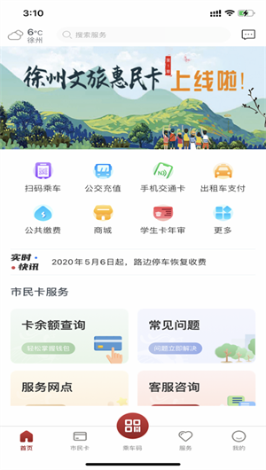 公共出行:通過徐州市民卡APP可以方便的進行公交車、地鐵等公共交通工具的乘坐查詢和費用結算。