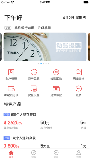 賬戶管理:方便地管理多個(gè)銀行賬戶,包括活期、定期等。