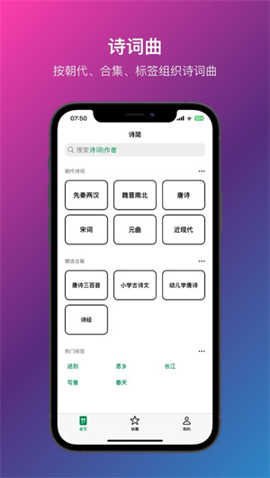 豐富的詩詞曲庫:覆蓋古今中外的詩詞曲,方便一站式瀏覽。