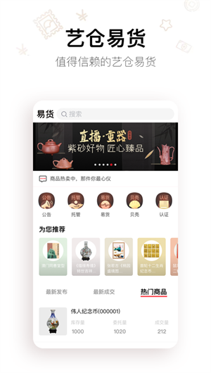 隨著版本的更新,藝倉易貨App持續增強用戶體驗,提升交易的便捷性,加強了與專業鑒定及倉儲公司的合作,確保交易的專業性和安全性。