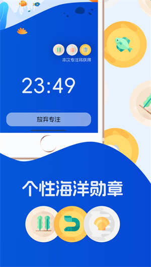 勛章激勵機制:通過海洋生物勛章來激勵自己,讓專注變得更加有趣、更加富有成就感。