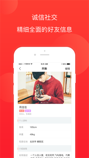 誠信機制:用戶的每一個資料和動態(tài)都經(jīng)過嚴格審核,保證真實性。